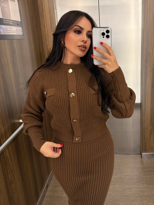 Berlin Kahverengi Triko Kazak Ve Etek Takım