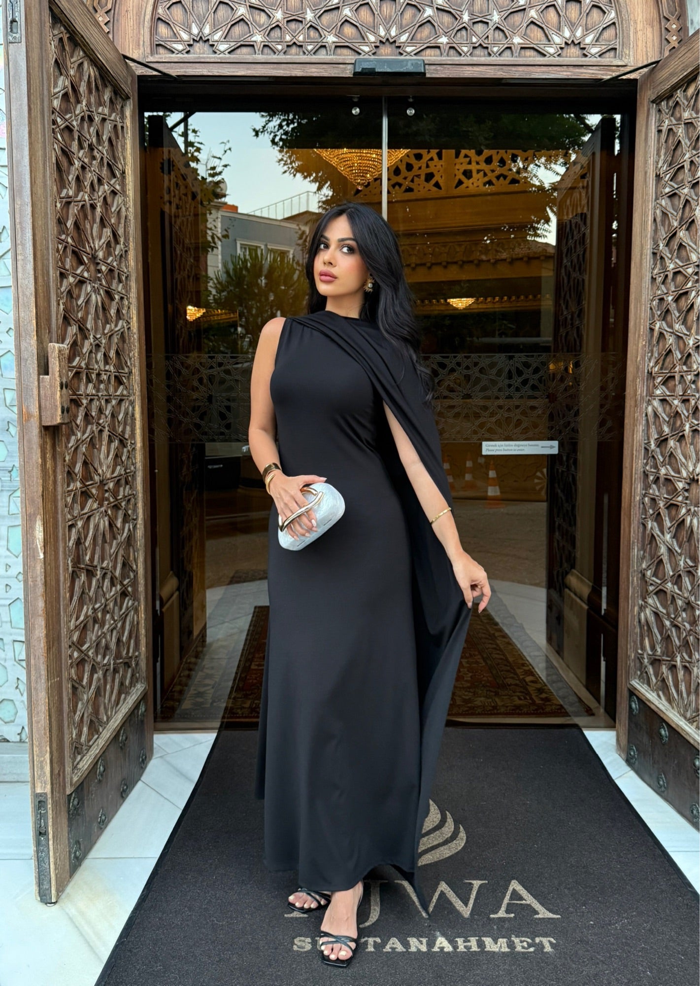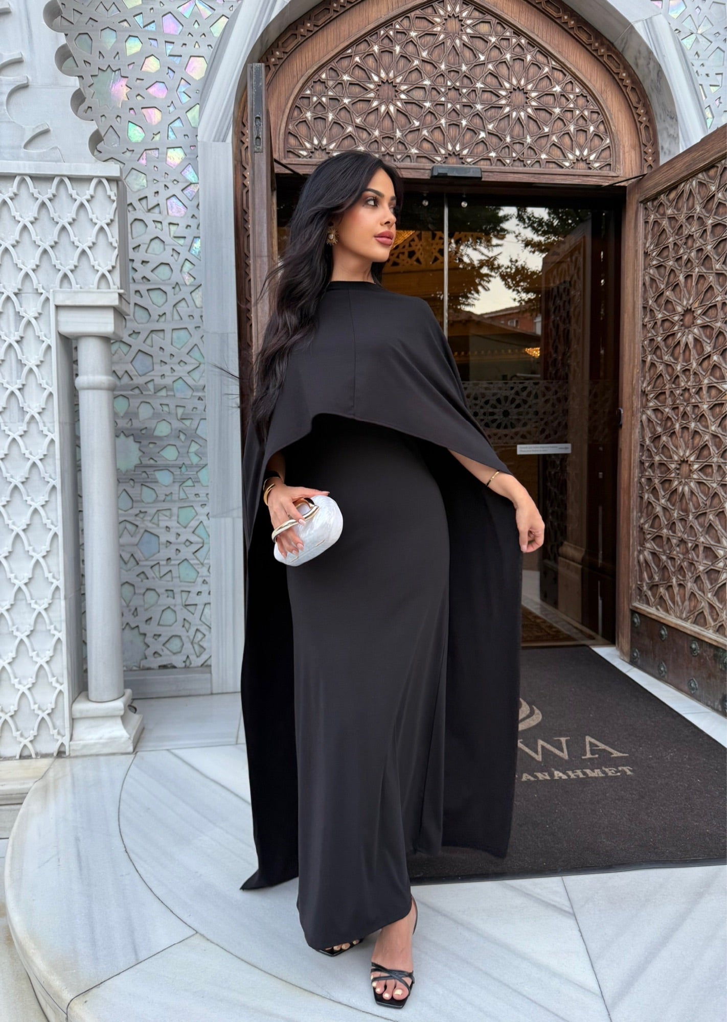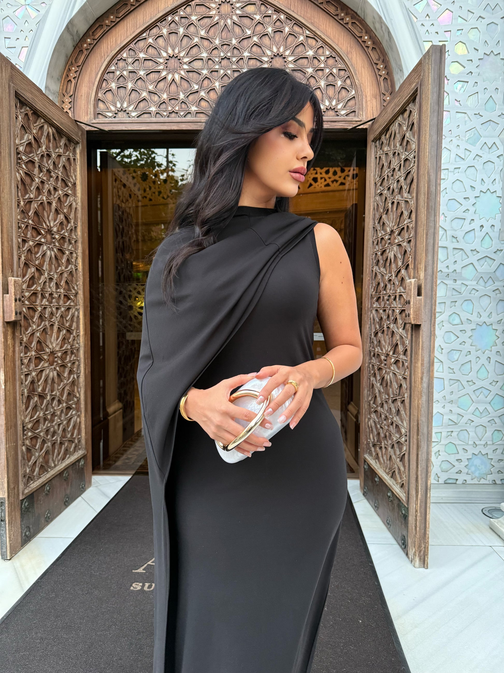 Zarafetin ve asaletin buluştuğu Asma Siyah Pelerinli Abiye Elbise, özel günlerinizde tüm gözleri üzerinize çekecek. Modern ve sade tasarımıyla dikkat çeken bu elbise, akıcı kesimi ve pelerin detayıyla benzersiz bir silüet sunar.