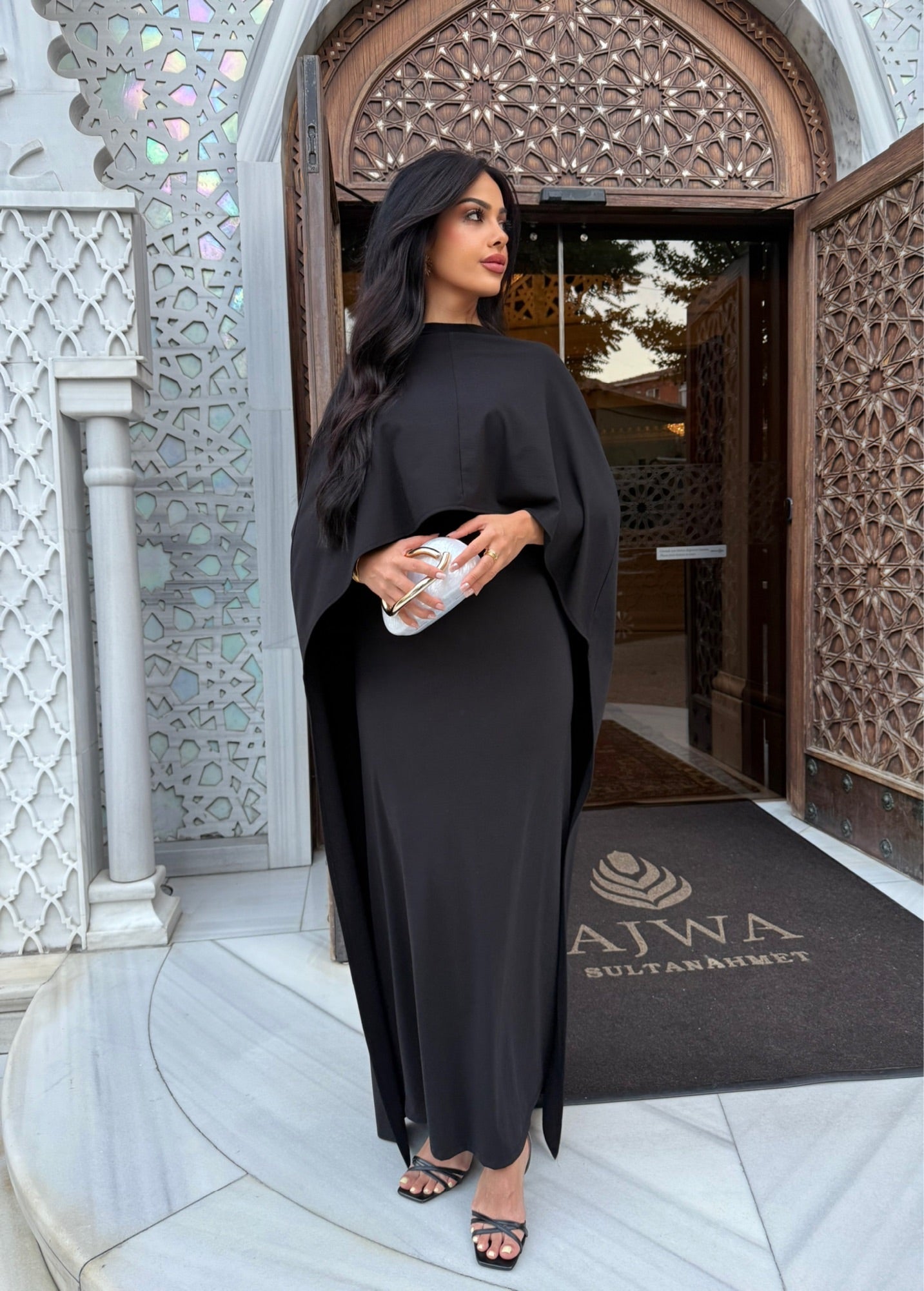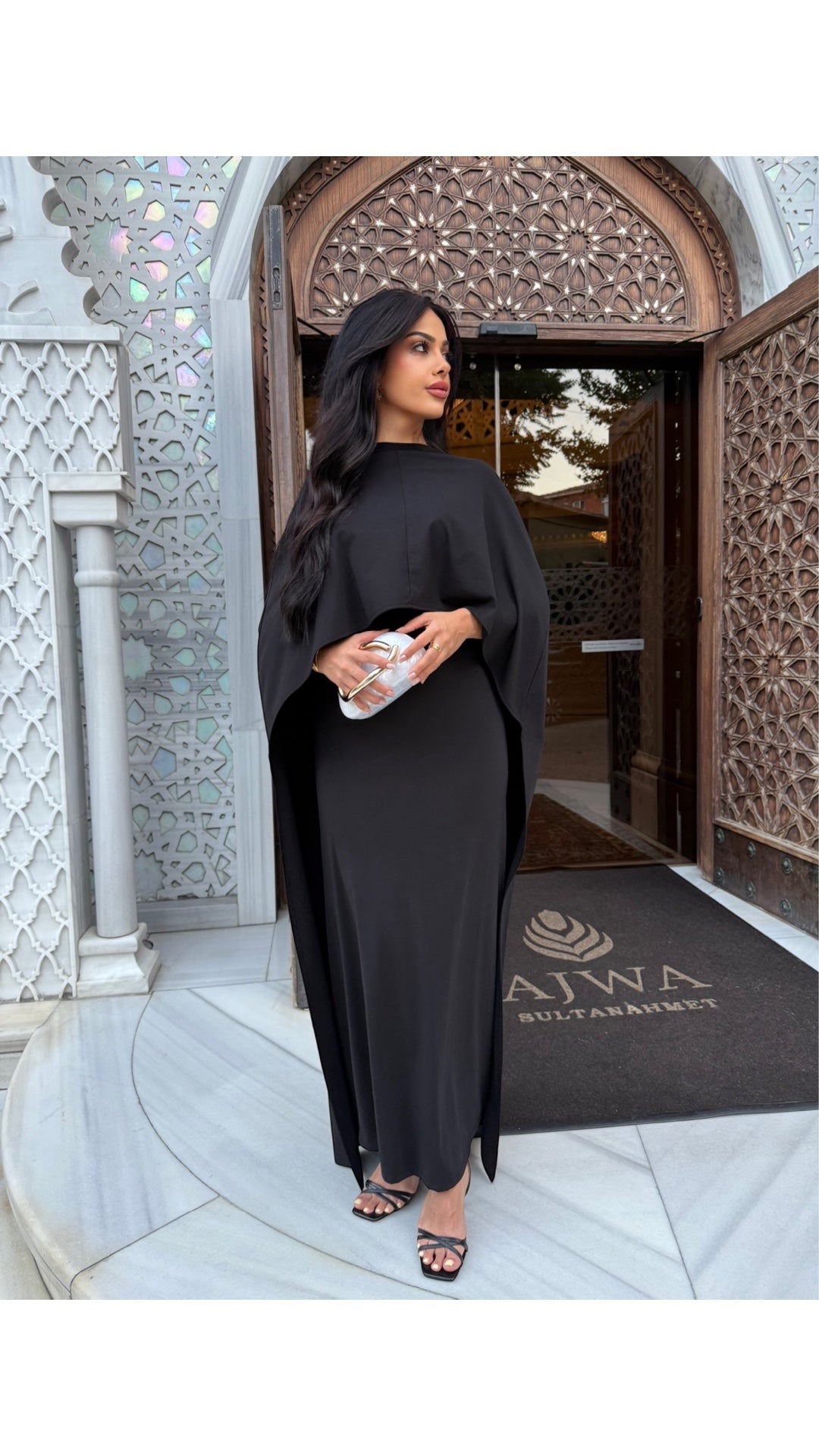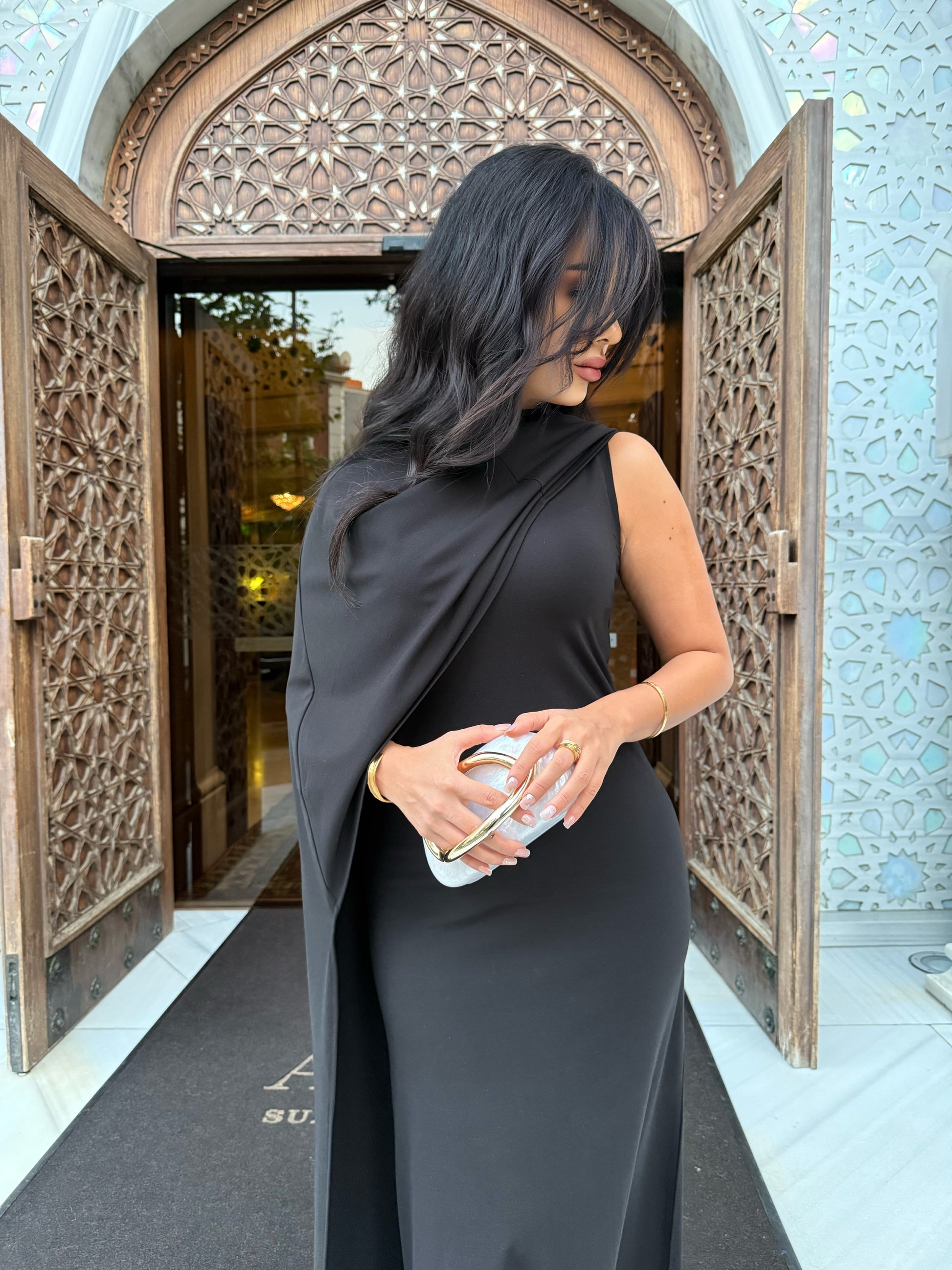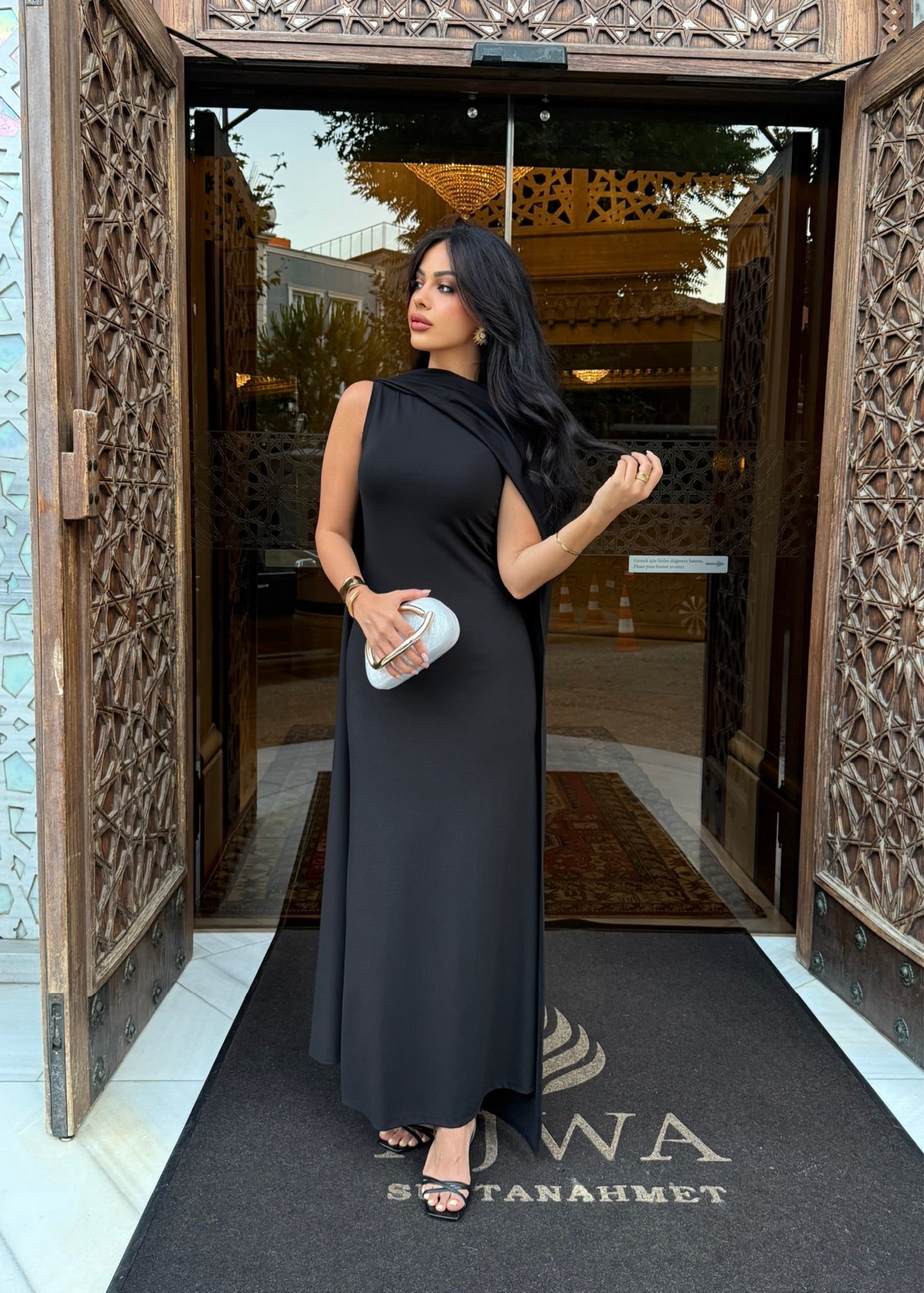 Zarafetin ve asaletin buluştuğu Asma Siyah Pelerinli Abiye Elbise, özel günlerinizde tüm gözleri üzerinize çekecek. Modern ve sade tasarımıyla dikkat çeken bu elbise, akıcı kesimi ve pelerin detayıyla benzersiz bir silüet sunar.