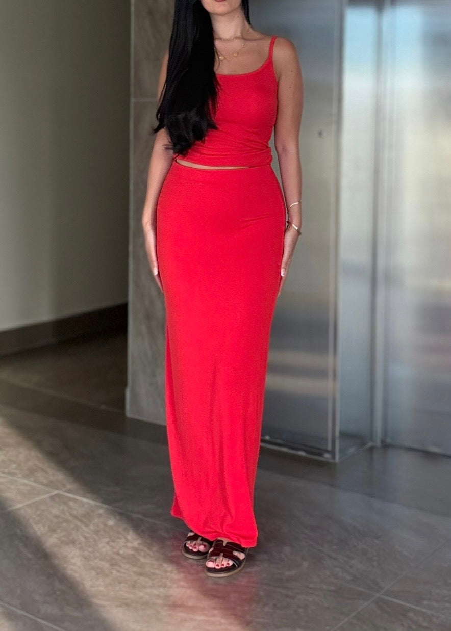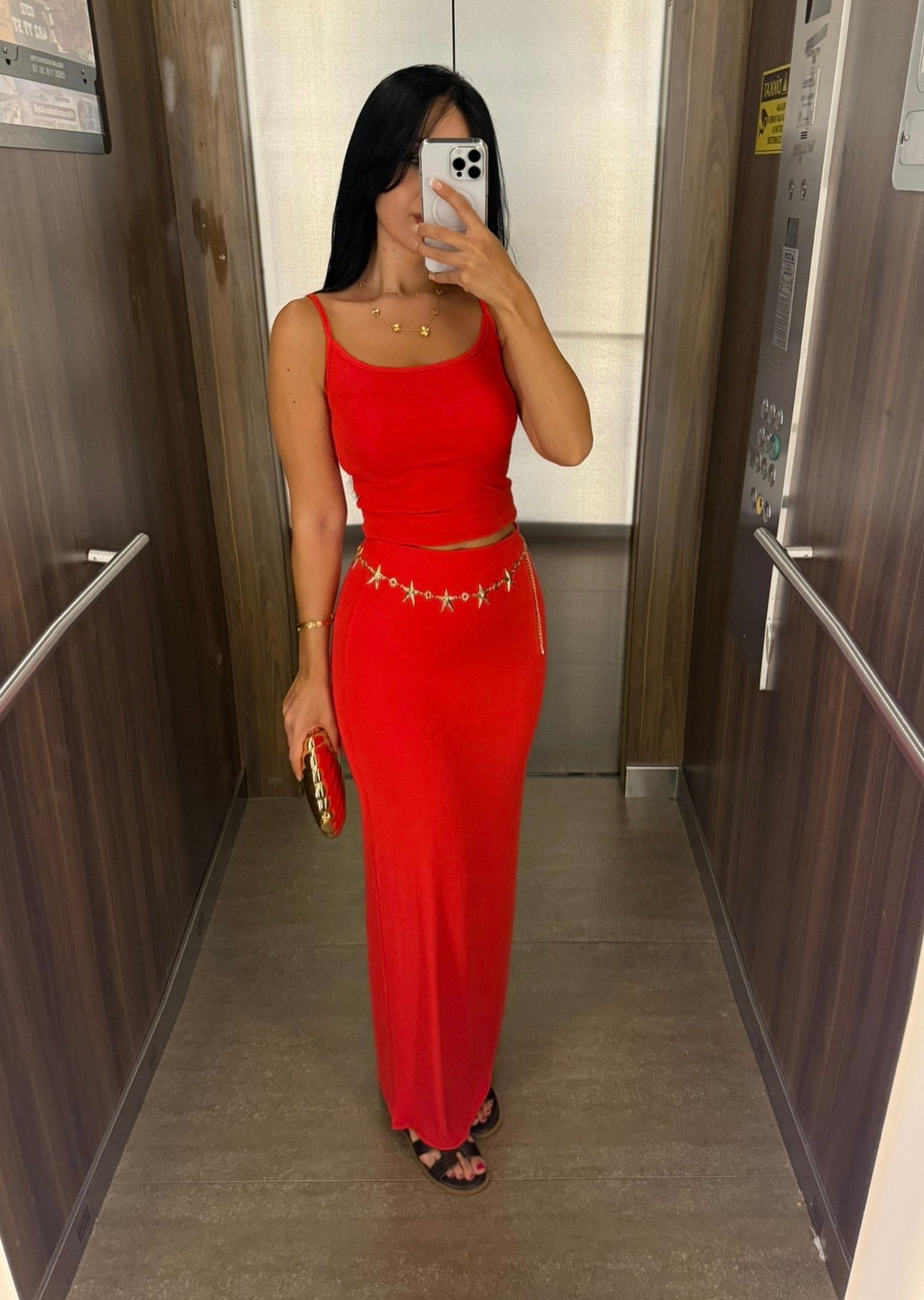 Kumaş %100 pamuk. Bluz uzunluğu 55 cm, etek uzunluğu 107 cm.