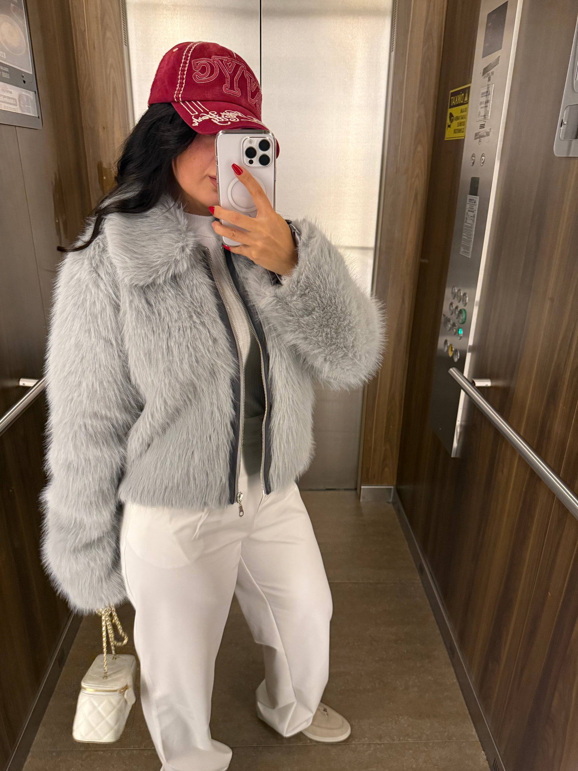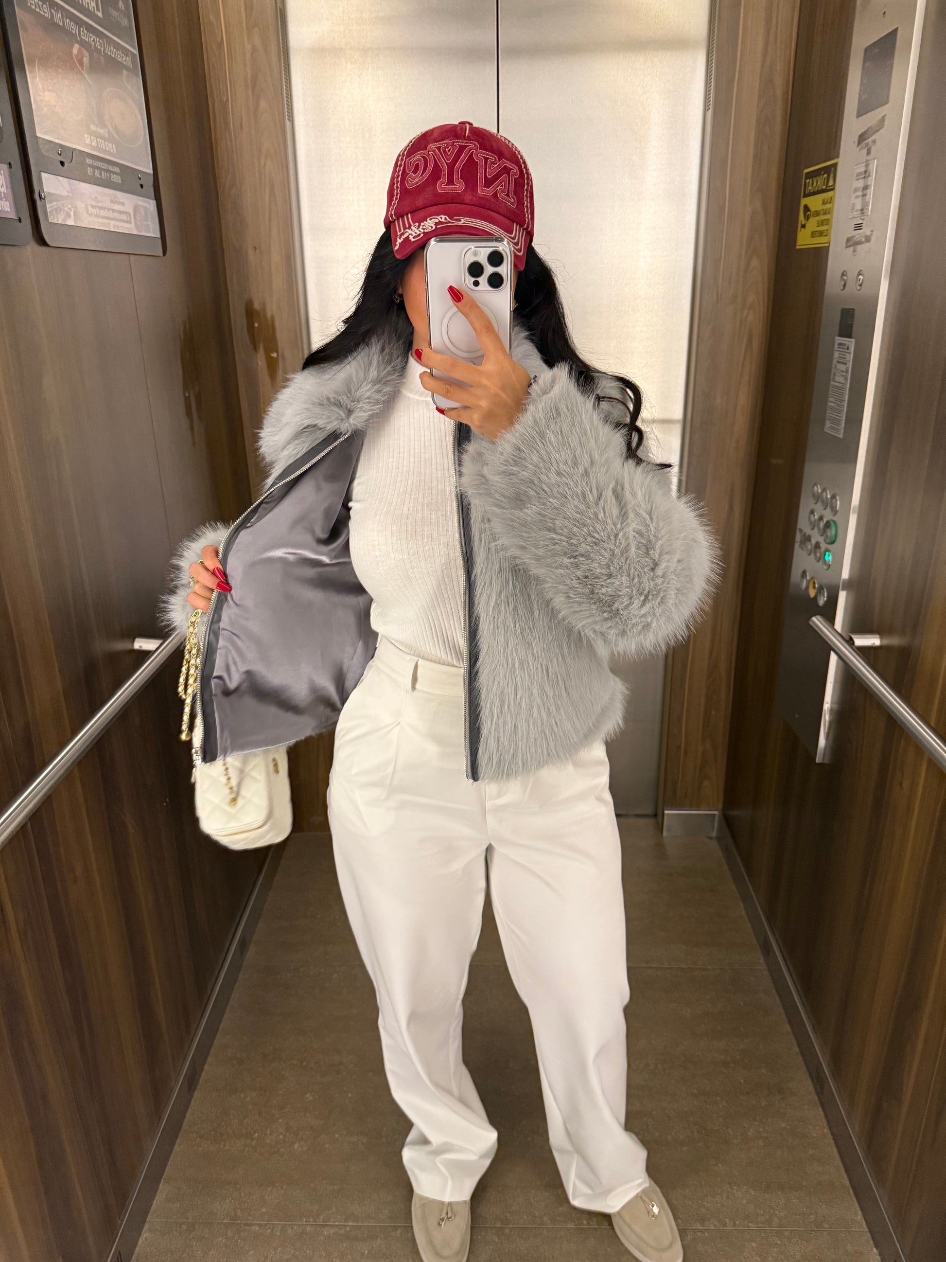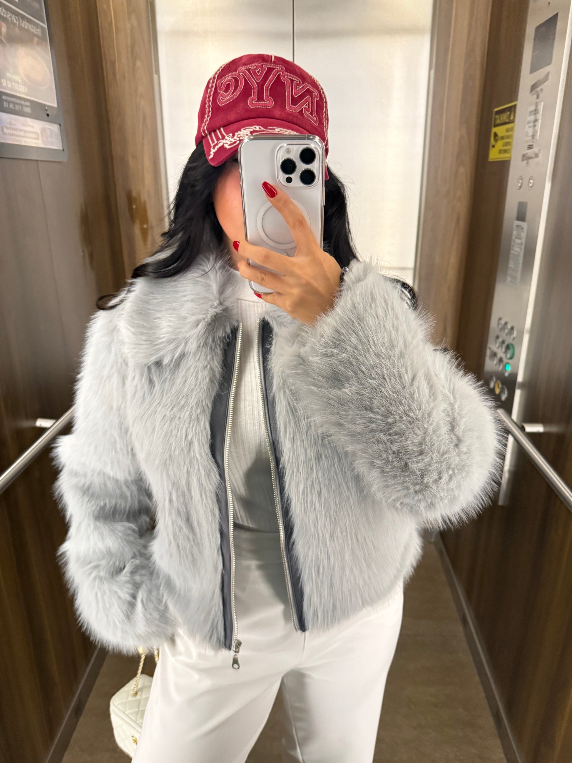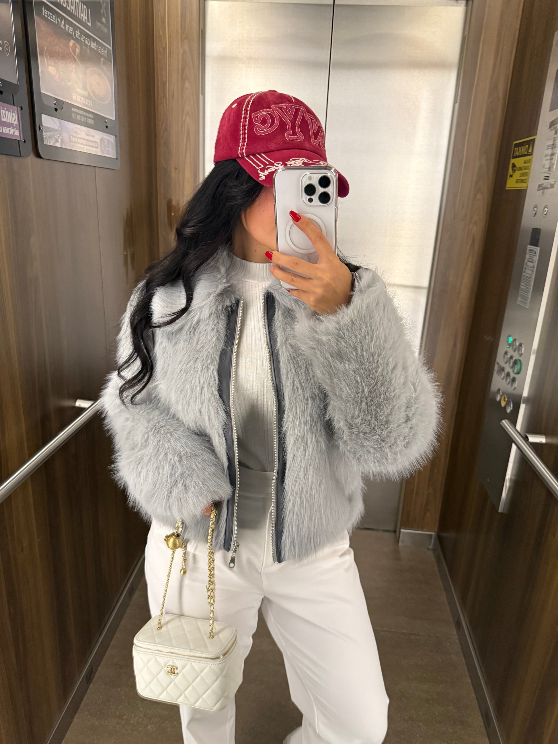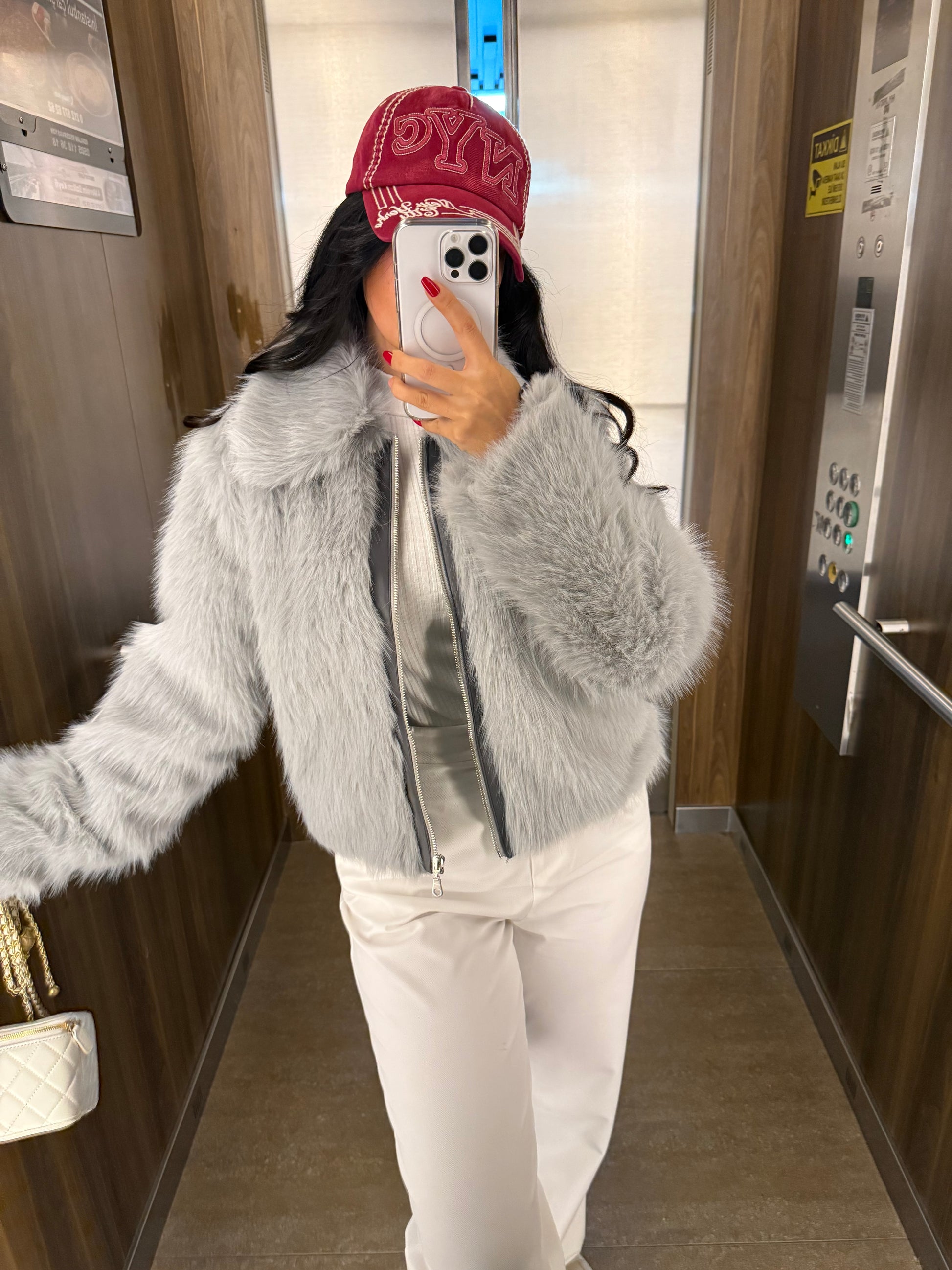 Gri Fermuar Detaylı Kürk Ceket